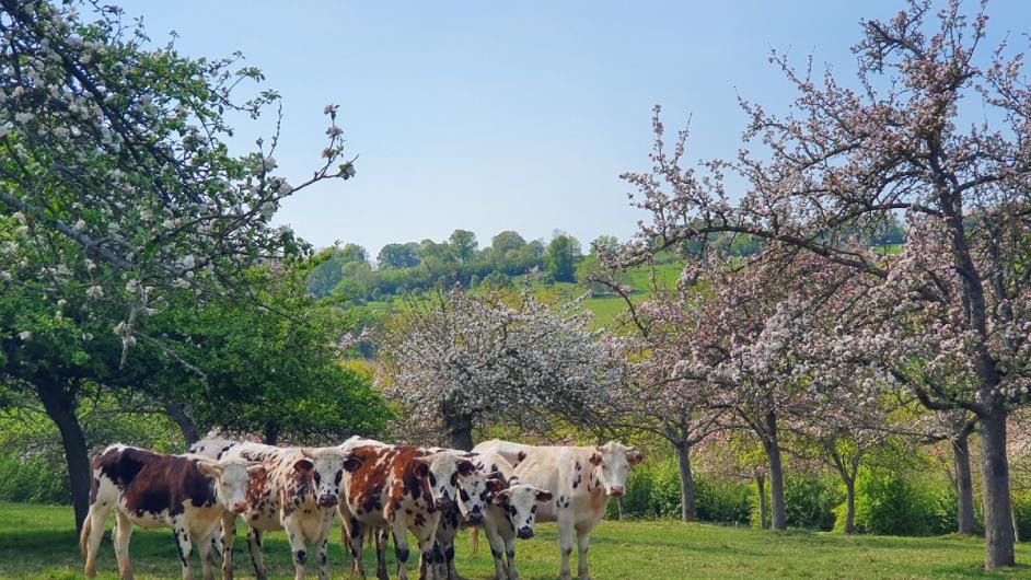Producteurs cidricoles et éleveurs de vaches normandes situés sur la Route du Cidre.