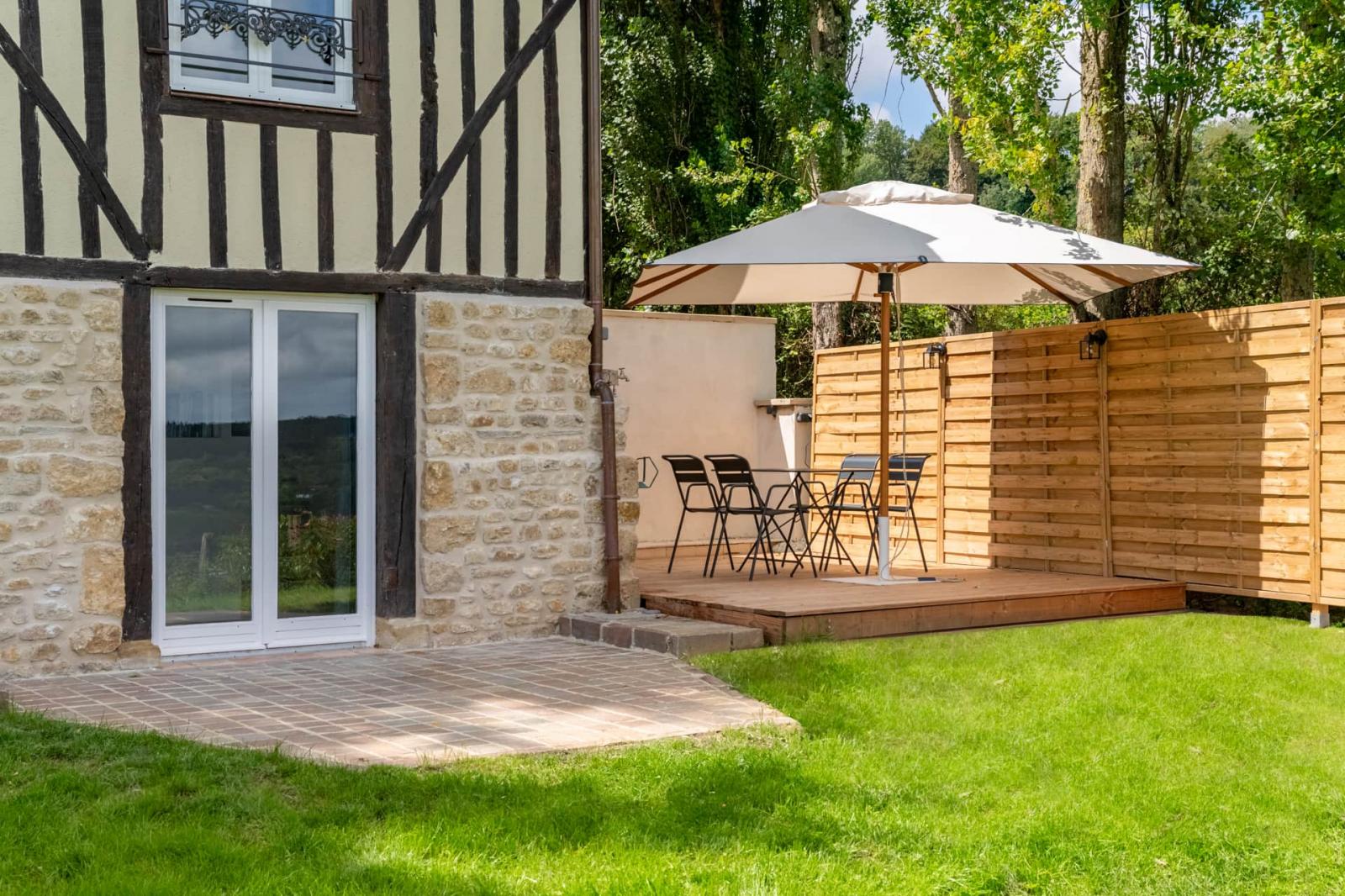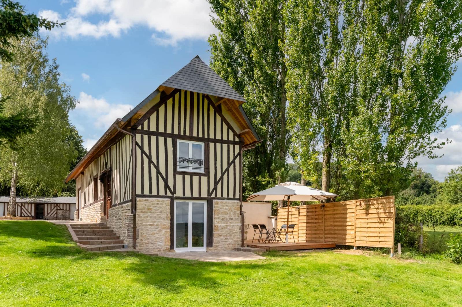 Ce petit havre de paix présente une vue imprenable sur la vallée de la Touque.