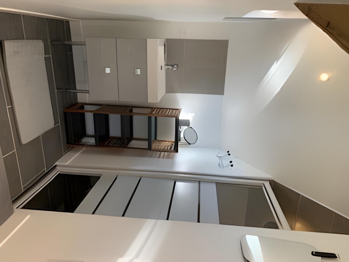 Une cuisine équipée ouverte avec un espace repas