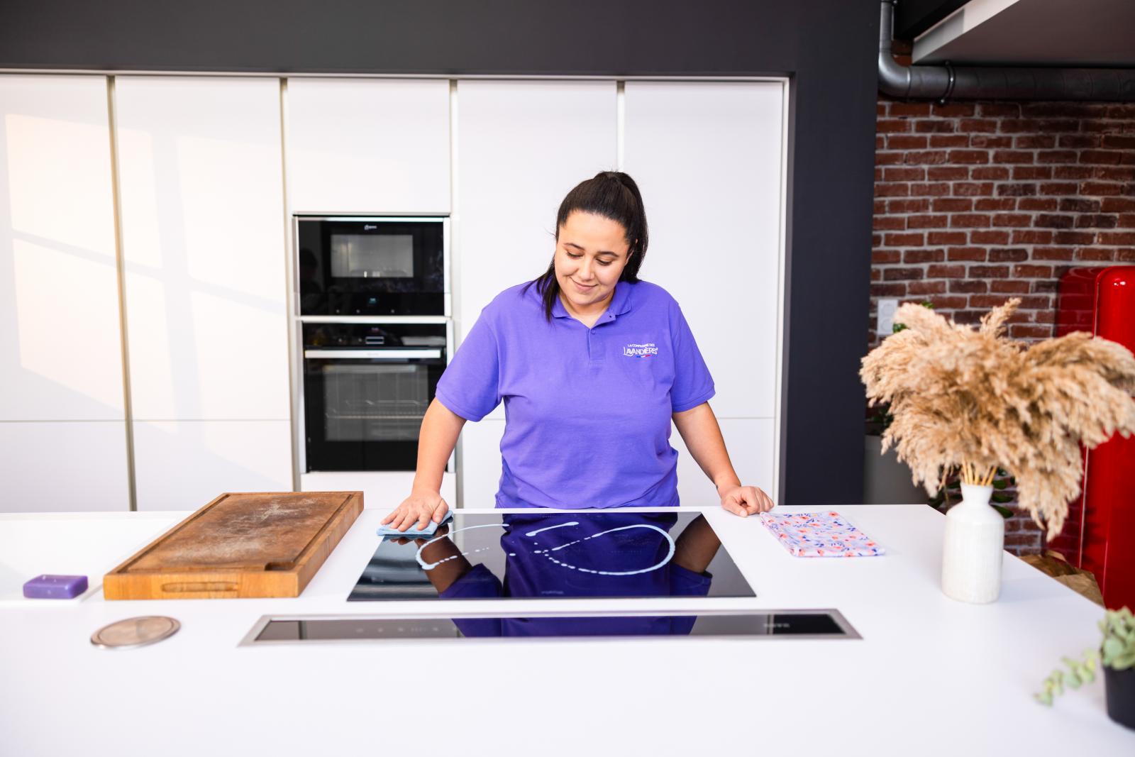 Ménage à domicile : nettoyage des sols, des surfaces, des cuisines et salles de bain, dépoussiérage, rangement et entretien général du logement, ainsi que le nettoyage des vitres.